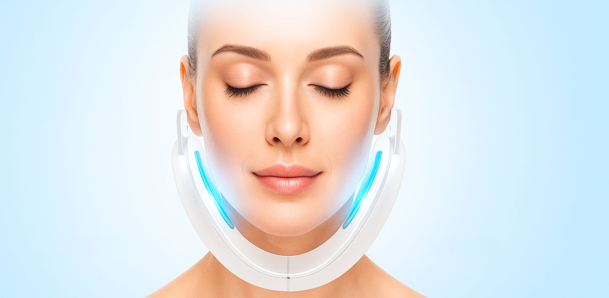 Étude sur 44 femmes. EMS + microcourant appliqué sur un côté du visage comparé à un traitement cosmétique seul. Résultats : amélioration des rides, du contour facial, de l’élasticité, et réduction visible du double menton.